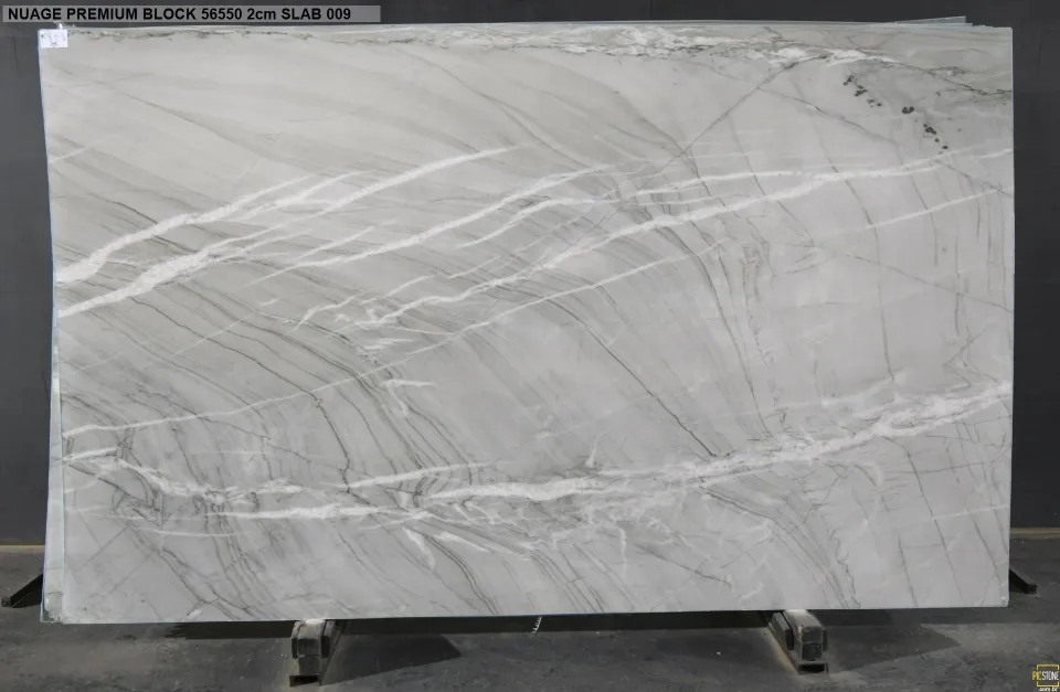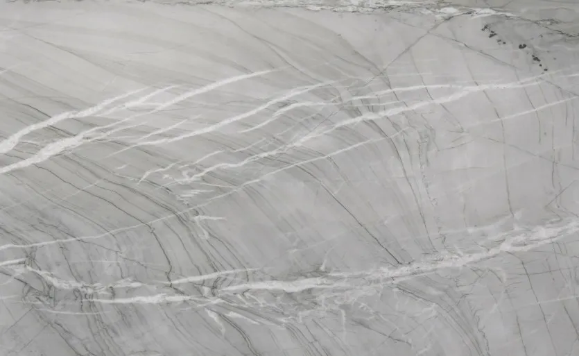 Nuage Quartzite features a soft, cloud-like blend of light grey and white tones with subtle linear veining. Its elegant, airy appearance brings a sense of calm and sophistication, making it ideal for countertops, splashbacks, and feature walls.