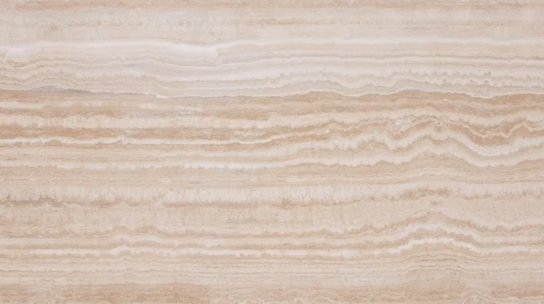 Immerse your space in the timeless elegance of Ondulato Vein Filled Travertine a stone sculpted by nature itself over millennia. This stunning slab features distinctive, linear striations in warm, earthy tones ranging from creamy beige to soft taupe, creating a serene, layered look that speaks of organic sophistication.