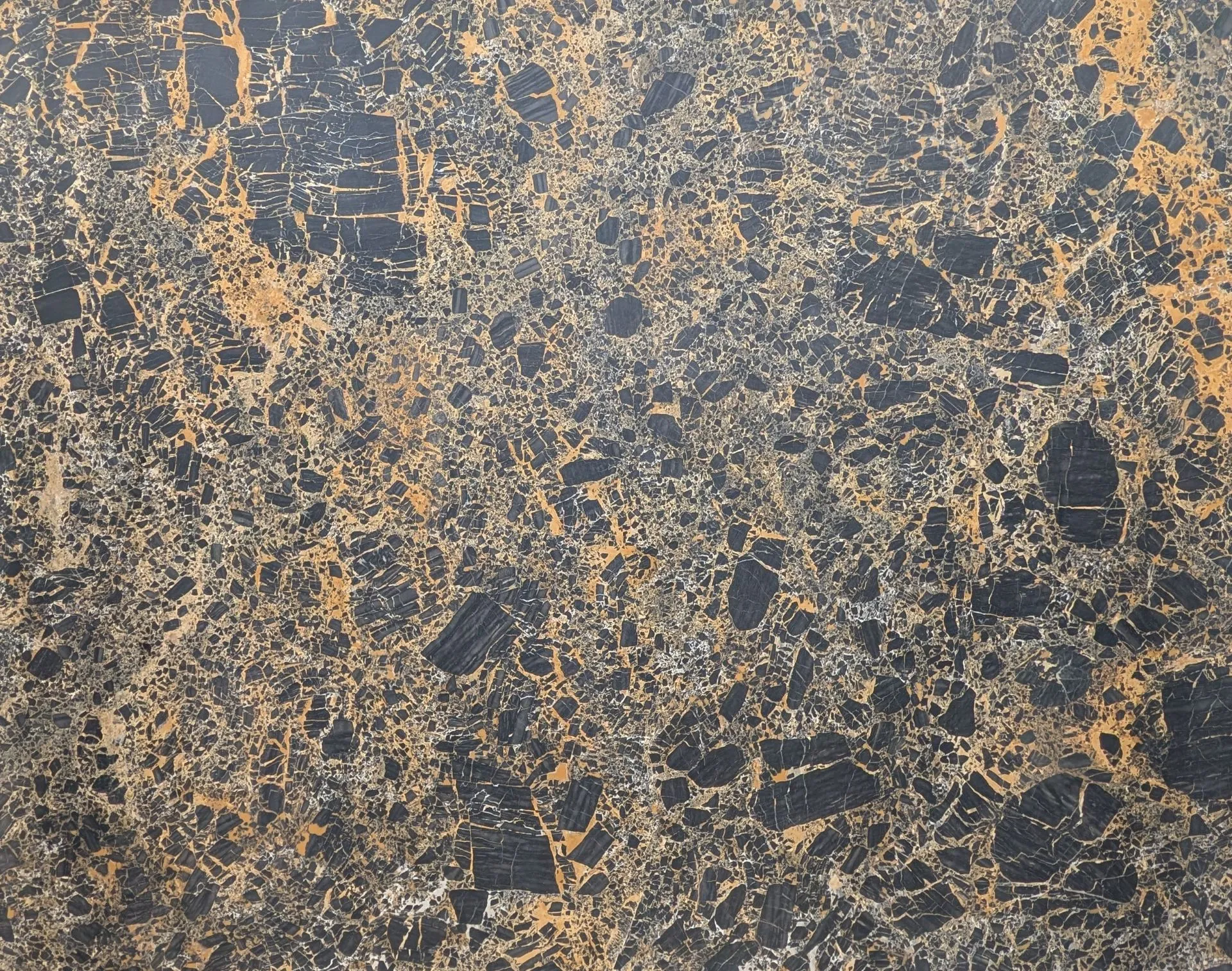 Portoro Gold is a striking marble defined by its dramatic interplay of deep black and radiant gold veining. The rich, luxurious contrast of tones gives this stone a bold yet timeless elegance, evoking a sense of opulence and depth. Each slab showcases intricate patterns of gold, amber, and charcoal, creating a captivating visual movement.Â