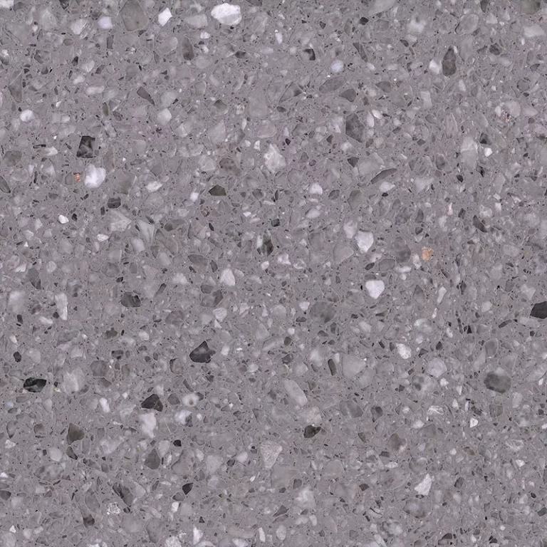 Time Line is a sleek and modern terrazzo featuring a mid-grey base. Scattered throughout the surface are small flecks of white and light grey, adding delicate depth and texture to the design. The soft contrast of the white and light grey against the mid-grey base creates a calming, balanced aesthetic that’s both contemporary and timeless.
