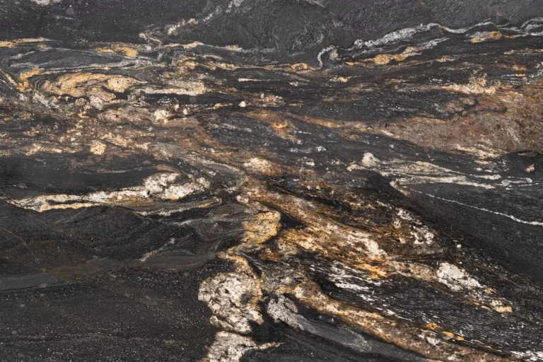 Titanium Gold Granite stands as a masterpiece of captivating movement, showcasing a visually striking and dynamic physical presence. This natural stone is a testament to bold aesthetics, drawing the eye with its mesmerizing blend of blacks, whites, and golds. Each slab tells a unique story, making Titanium Gold Granite a timeless choice that transcends the ordinary, transforming any space into a visual symphony of elegance and luxury.