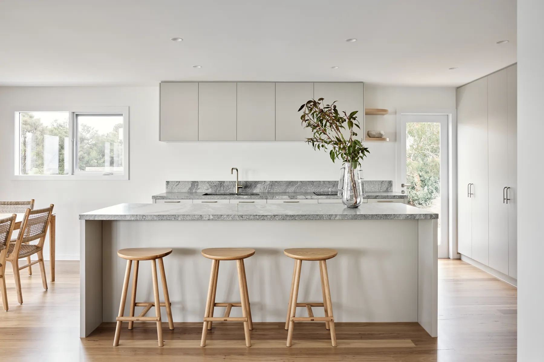 Camberwell Residence About this Project: Featured Stone: Super White Marble Slabs Tundra Light Limestone Builder/Architect:Â De.arch Architecture JBM Group